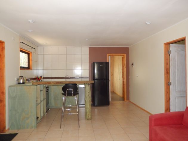 Completamente equipada con ropa blanca (sabanas, toallas y plumón), menaje completo para cocinar, refrigerador, microondas, cocina gas con horno, calefón. También cuenta con TV satelital, calefacción a leña y parrilla exterior para sus asados.