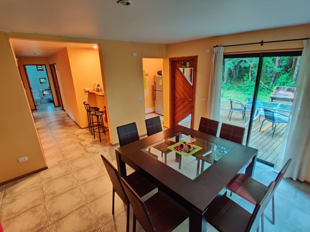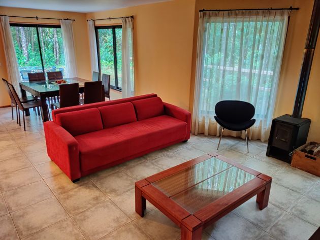 Completamente equipada con ropa blanca (sabanas, toallas y plumón), menaje completo para cocinar, refrigerador, microondas, cocina gas con horno, calefón. También cuenta con TV satelital, calefacción a leña y parrilla exterior para sus asados.